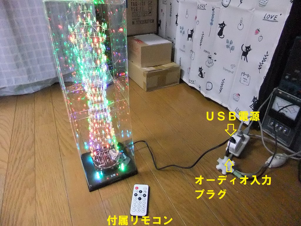 1段づつの点灯試験、USBケーブルに付いているイヤホンプラグに信号を入れて