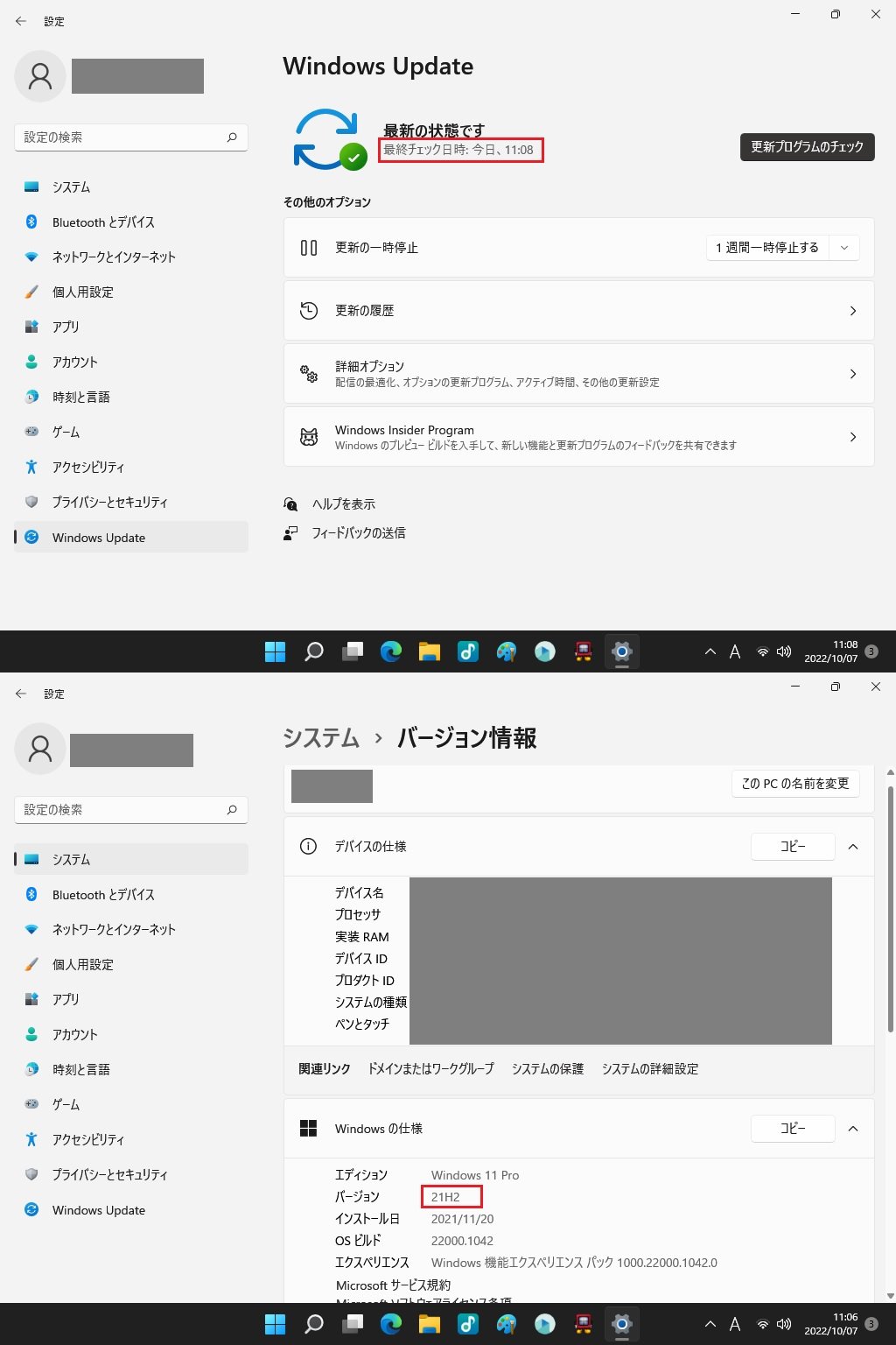 「22H2」のアップデートアナウンスがないのかもしれません、そういえば最近