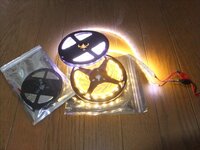 防水構造の12V駆動LEDテープと自分で購入した電球色LEDテープがある