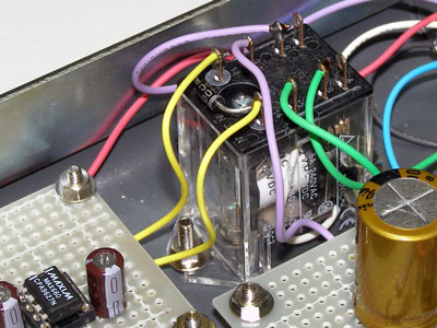 リレー付近の配線。サージ吸収用のダイオードの向きを間違えるとTr3破損の原因になる。