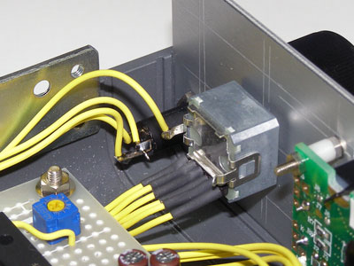 | 実はこの作業が一番大変だったりします。内部を美しく仕上げることができるか決まる作業です! 「もうすぐ完成だぁ」などと焦らないで丁寧な配線にして下さい。 尚、高インピーダンスを扱うものでないことと、電源としてスイッチングタイプのACアダプターを使うためノイズの影響は少ないので、配線材料にシールド線を用いなくても実用になります。 |